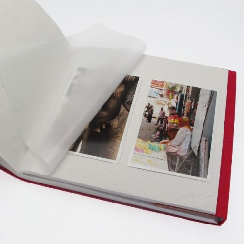 Our colourful sari covered photo albums are the perfect place to keep your most treasured moments. Each one is filled with 30 pages of handmade khadda paper, acid-free and interleaved with tissue paper to protect and preserve your memories. The album can hold up to 120 6×4″ photos._x000D__x000D_Dimensions: 26 x 24 cm_x000D__x000D_Expertly crafted using both contemporary and traditional methods, each one is bound by hand and sturdy enough to keep all your most treasured memories safe. The sari material comes from Varanasi, one of the most religious cities in the world and a centre of excellence for sari making._x000D__x000D_The pages are created from khadda paper (also known as kaddi or khaddi). This sustainable material is crafted by hand from recycled cotton, salvaged from the huge waste of the Indian garment industry. Only unbleached cotton is used, ensuring the paper is acid-free. Lightly textured and luxuriously thick, it feels beautiful to write, draw, or paint on. While it’s perfect for ball-point pens, gel pens, or watercolours, we wouldn’t recommend it for use with fountain pens._x000D__x000D_Photos can be placed inside the photo album with glue, spray mount or clear, self-adhesive photo corners._x000D__x000D_Due to the handmade nature of our products each one is unique, but loveliness comes as standard._x000D__x000D_All the products in this range are handmade by a small family business in Rajasthan, India. We are fortunate enough to visit them every year, having worked with them for many years following Fair Trade guidelines. We are incredibly proud that together we are able to provide people in rural villages fairly paid work that may have otherwise been difficult to find, and consider the producers and their families true friends. The paper in all our journals and photo albums is made by a charity in rural Rajasthan that promotes women’s education and their social standing in the rural villages._x000D__x000D_By making a purchase, you are helping to continue the fantastic work of our producers._x000D_