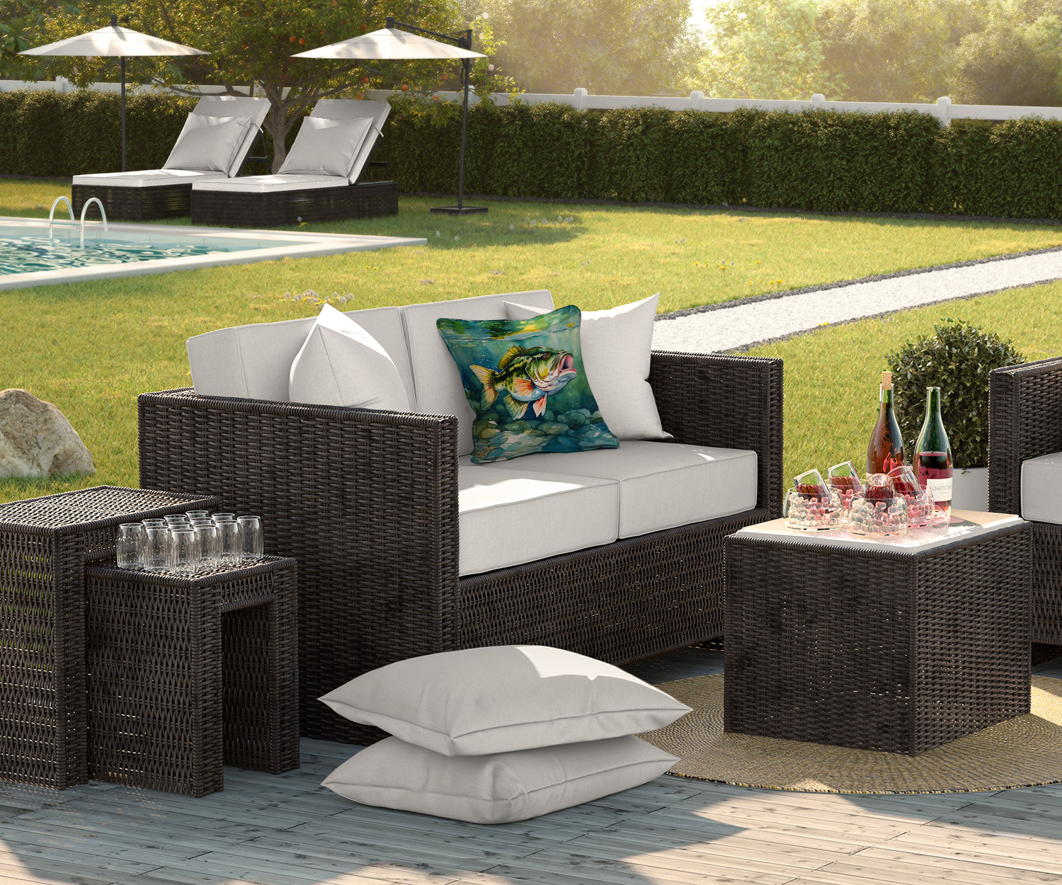 Throw Pillow featuring breed specific Largemouth Bass artwork. Revitalize your outdoor or indoor living space with Caroline’s Treasures 18×18 Fabric Decorative Pillow. With a generously sized dimension of approximately 18 inches by 18 inches, this pillow makes a comfortable and aesthetic addition to any seating area. Made from a unique, water-resistant material developed by Caroline’s Treasures, the pillow sham is 100% polyester fabric that’s durable and ready to weather any condition. Its vibrant, full-color artwork will not fade over time as it is dyed with color-fast dyes. Whether you place it on your patio furniture, porch, veranda, or indoor couch, its soft canvas fabric ensures a cozy experience. The pillow is handcrafted in the United States, featuring a sham created from three pieces of fabric and a polyester insert for enduring shape and overstuffed comfort. Despite being robustly built to endure the outdoors, it is as soft and snug as your favorite indoor cushions. Please note, as all our pillows are handmade, sizes may vary slightly, adding to the charm of this unique decorative item.