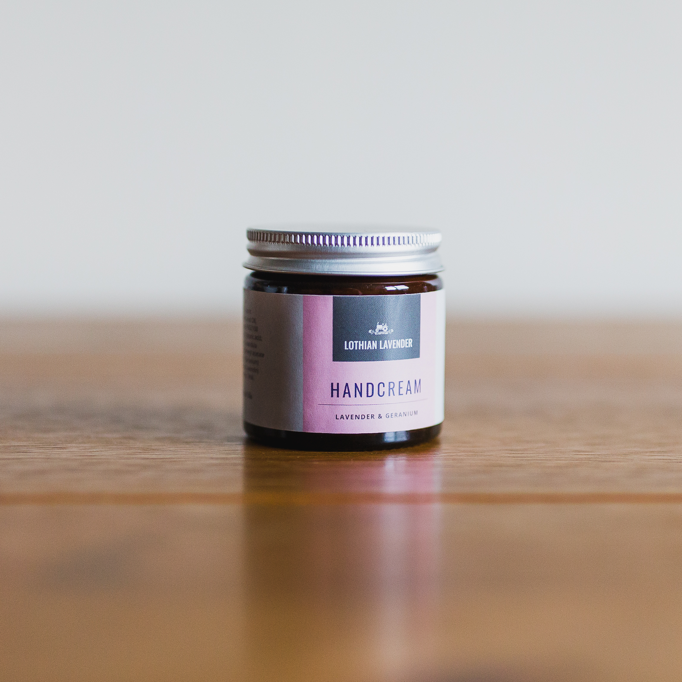 Our best selling hand cream in an apothecary style amber glass jar. Made with lavender and geranium essential oil blend including our lavender oil distilled onsite our lavender garden in Scotland
