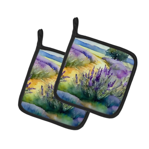 Pair of Pot Holders featuring breed specific Lavender artwork. A Pair of Pot Holders to match your kitchen decor. Made in the USA these are thick and functional. Full color artwork decorates the front polyester fabric of the hot pad and accented by a black trim. Use these at as a trivet for your Thanksgiving or Christmas tablescape. Filled with insulated fabric and quilted for durability. These colorful pot holders will make a great gift for your favorite home cook or executive chef. Each pot holder measures approximately 7 1/2 inches by 7 1/2 inches. A hanging tab is included.