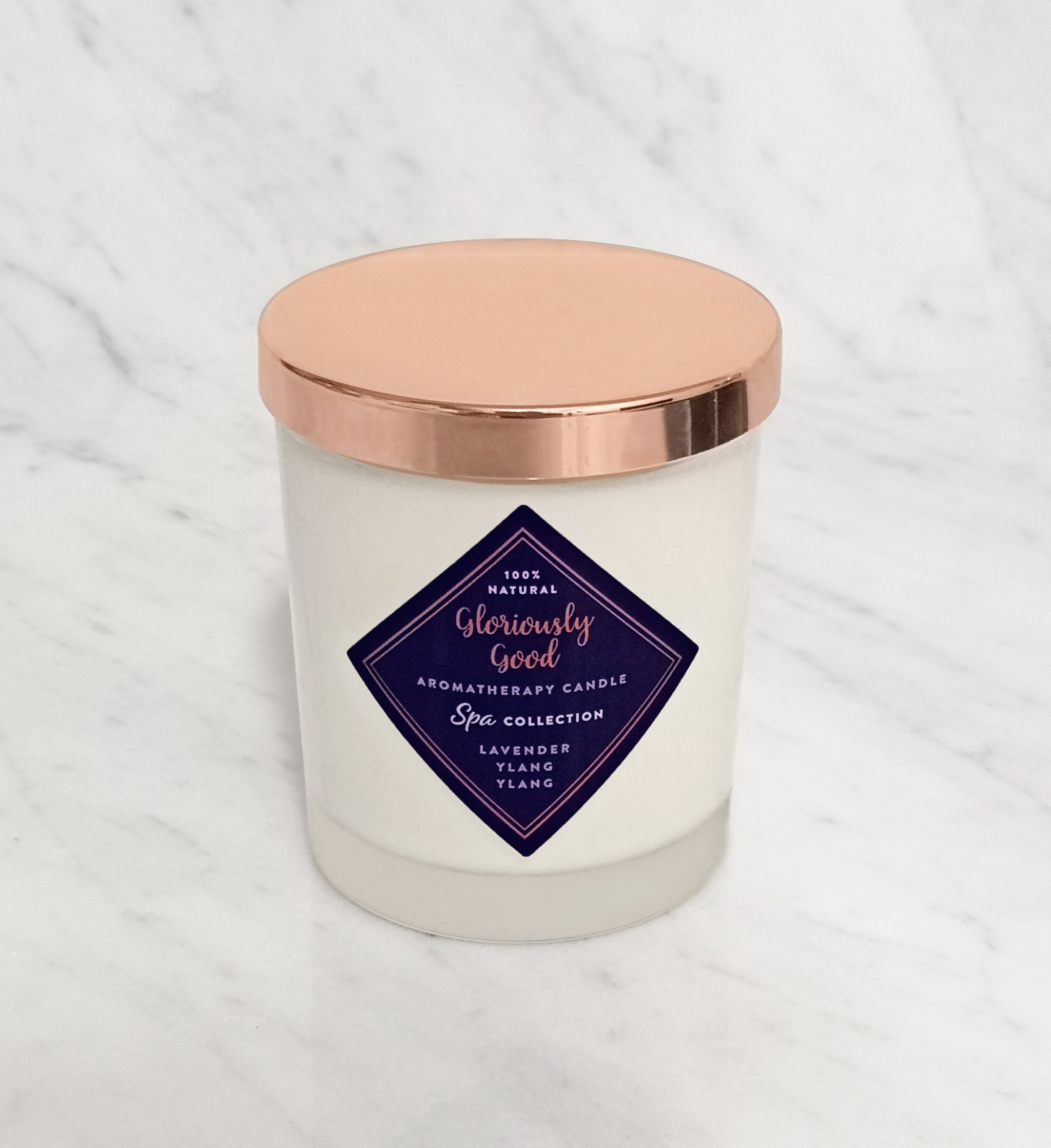Indulge your senses with this Gloriously Good Lavender and Ylang Ylang aromatherapy candle from our Spa collection. As you light this candle, breathe in its beautiful fragrance and enjoy a delightful sense of calm and relaxation.