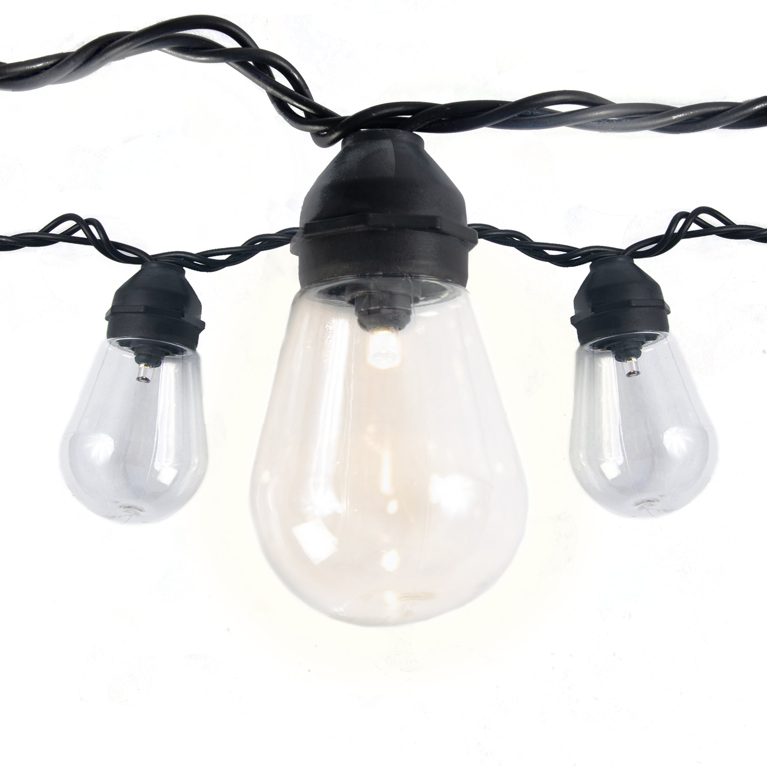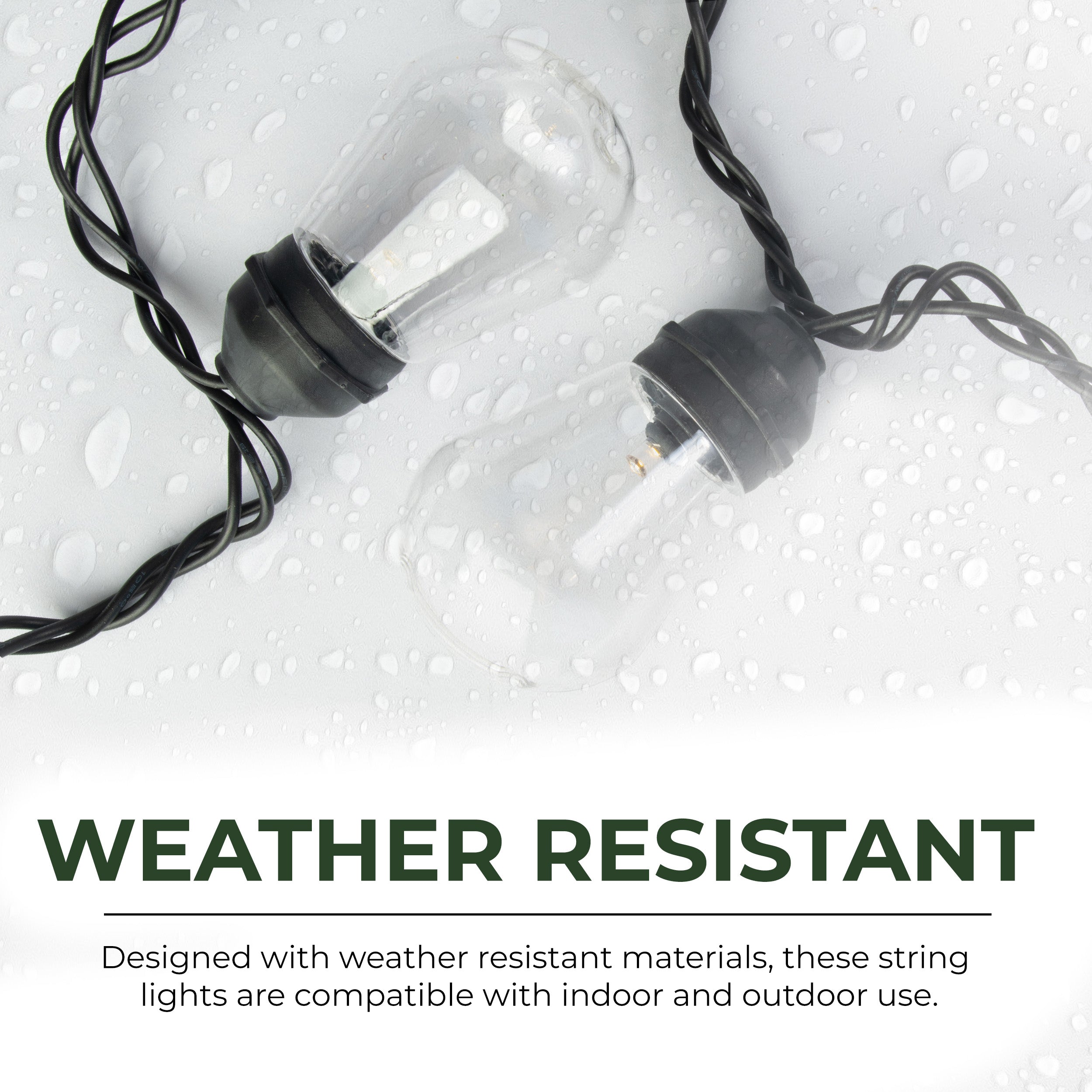 These string lights from Rivers Edge Products are ideal for adding some flair to your holiday decorating. They are easy to use, just plug them in to light them up. To use more than one set of string lights, connect the fused plugs end to end. These string lights are a great accent for anyone to enjoy all year long.Features: 10 foot cord Standard sized UL approved bulbs 2 replacement bulbs are included Weather resistant materials Indoor and outdoor use