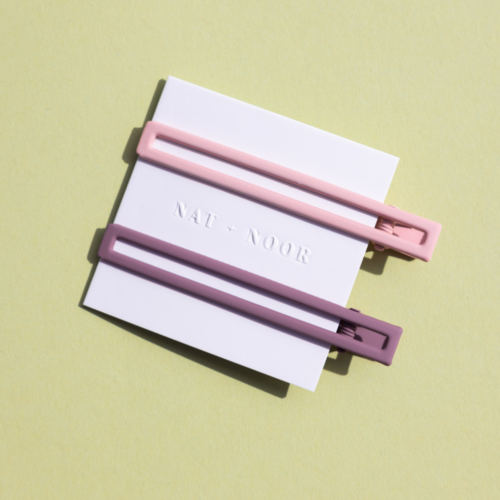 This 2-piece hair clip set is our favorite for everyday styling. Crafted from high quality metal, these alligator style hair clips provide a firm grip and secure hold. Our mauve and pink metal hair clips can go formal or casual and are perfect for half-up styles or securing bangs. Color: Mauve, pinkMaterial: MetalDimensions: 3.2” L x .3” W