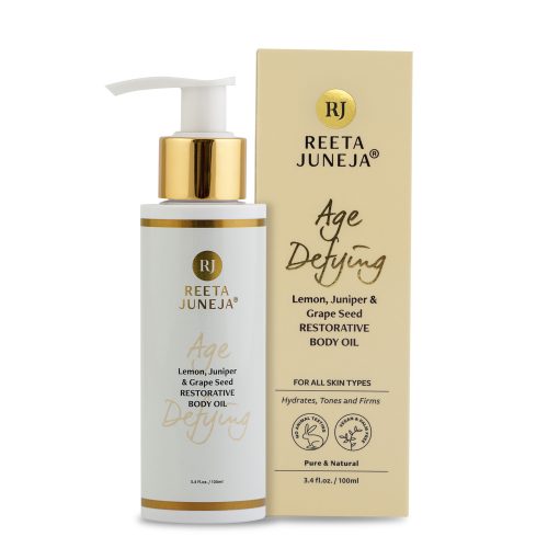 Our restorative body oil has some of most nurturing and potent carrier and essential oils such as Grape Seed, Juniper, Lemon, Rose Geranium and others. Which contains vitamins E, C, and D that helps sealing moisture in your skin which in turn works to alleviate the appearance of ageing, dry and dehydrated skin.