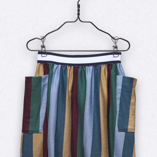 The Lena skirt is made of wide multicoloured striped Jersey, has two big pockets and a navy and white elastic as waistband. Wear it with the multicoloured Tommy longsleeve for a stylish and comfortable little outfit.