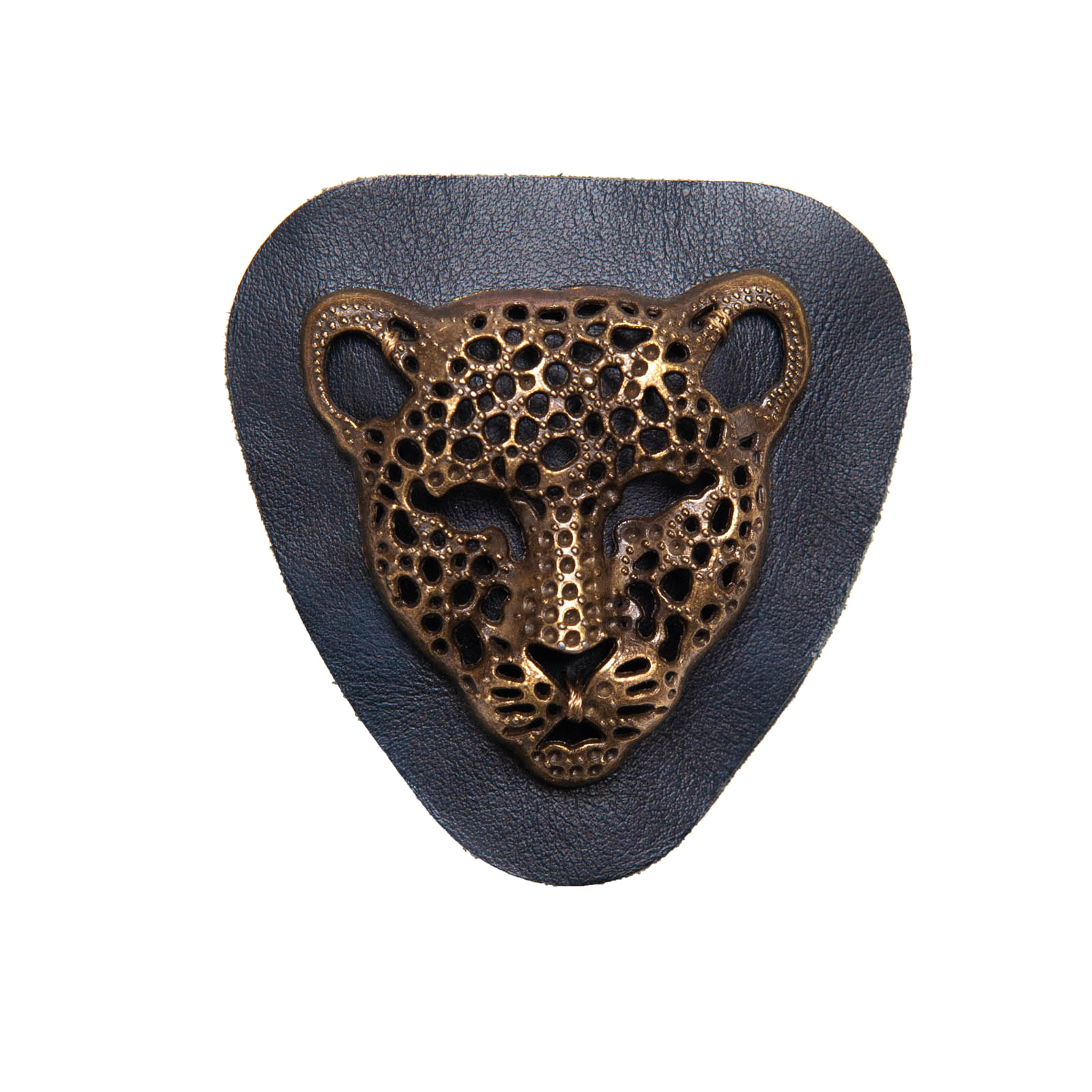 Material: Brass, leather (upcycled leather scrap from a handbag crafting studio), velcro hook.