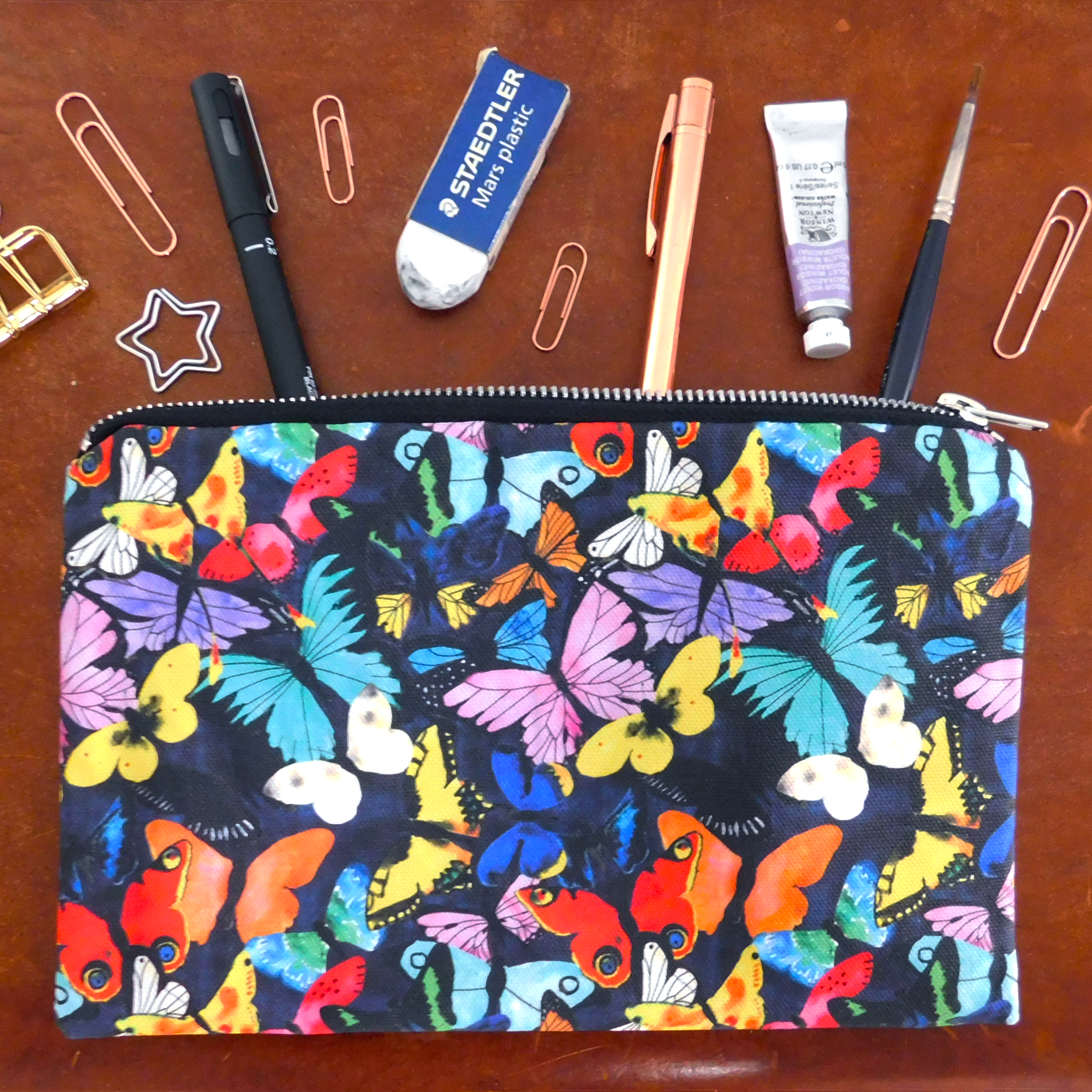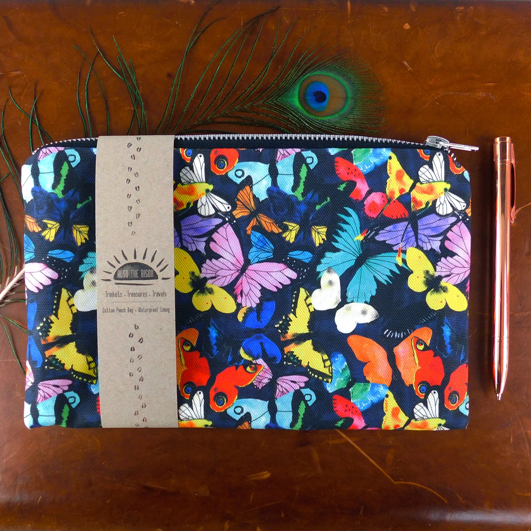 Our Pouch Bags are the perfect travel companion, large enough to keep all your trinkets and treasures organised on the go, they make excellent wash bags and pencil cases. They feature one of our fun watercolour designs, hand-painted by artist Maddie Chambers.