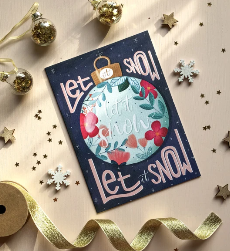 Send this beautifully illustrated Christmas card printed on really lovely FSC certified Callisto Pearl cardstock finished with an eco Kraft recycled envelope this year so that even if you can’t be with the people you love, you can out a little bit of that love in an envelope and send it off to them.