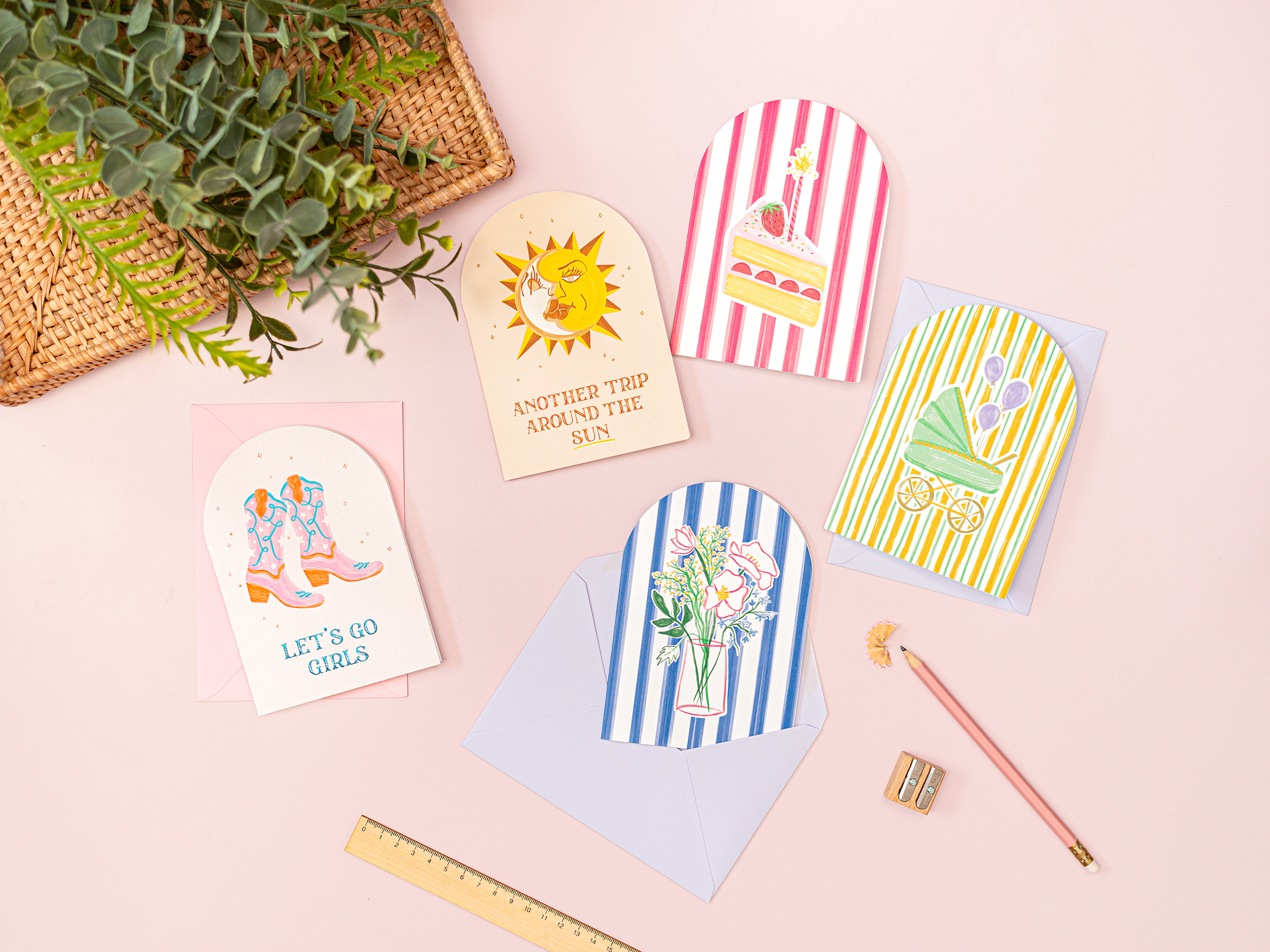 Vero Illustrated is an illustration brand focusing on cheerful art prints and greeting cards. Their cards depict joyful scenes using bright colours – each handpainted brushstroke evoking a personal touch. They are perfect for shoppers who appreciate unique cards with a quirky and whimsical feel.