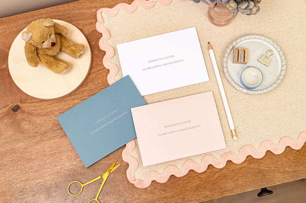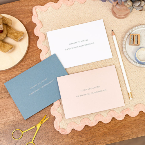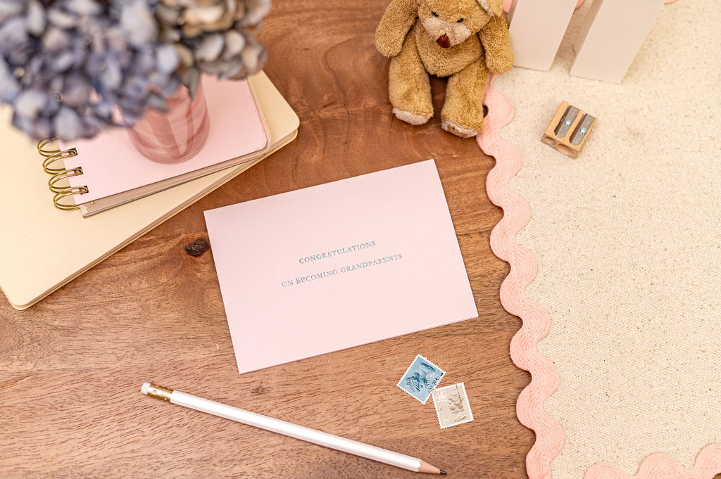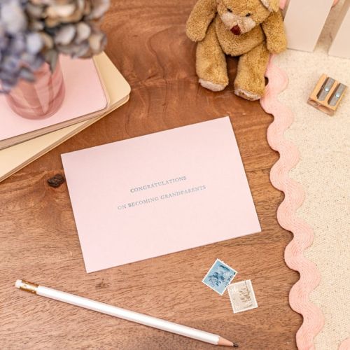 What a joyful moment – becoming grandparents! This beautiful pink letterpress card is just the thing to help celebrate those wonderful new grandparents in your life.