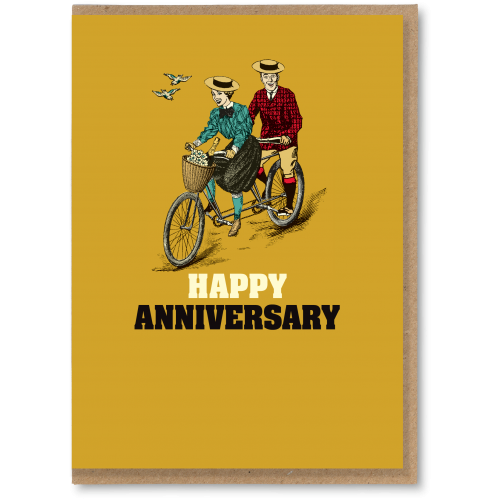 A funny, colourful and retro styled anniversary card, perfect for a seasoned couple.