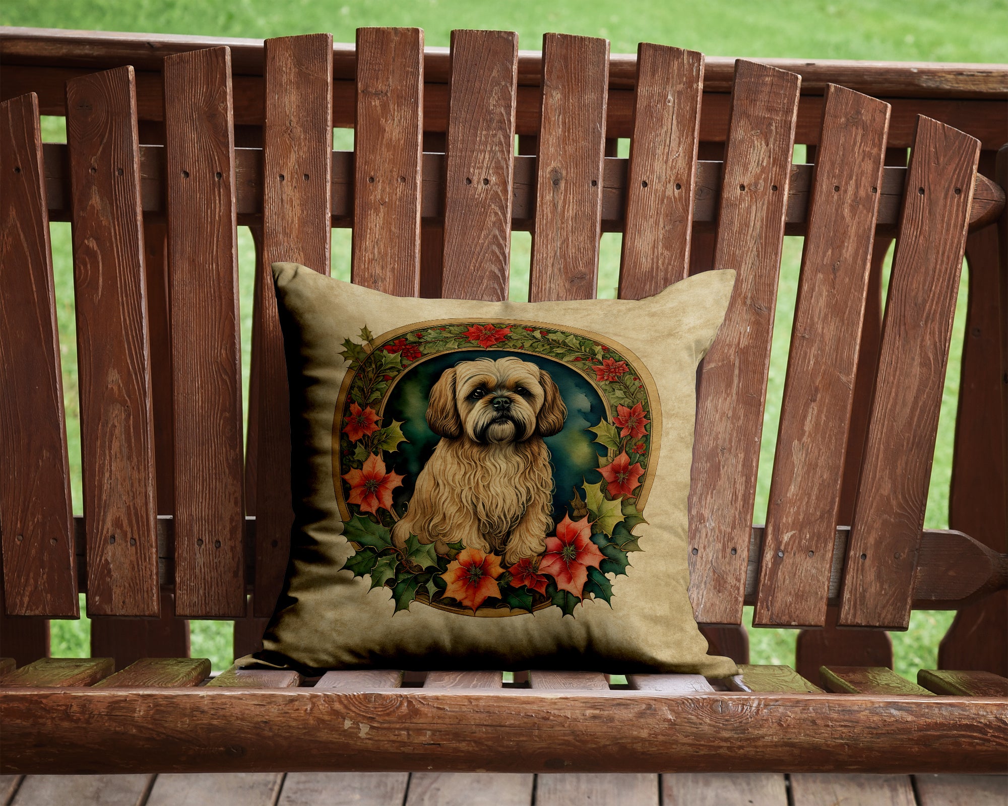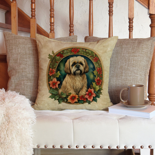 Throw Pillow featuring breed specific Lhasa Apso artwork. Celebrate Christmas with this Christmas Pillow. Add a touch of vibrancy and comfort to your outdoor seating with Caroline’s Treasures Fabric Decorative Pillow. Measuring approximately 14 inches by 14 inches, this outdoor pillow is crafted to elevate the appeal of your patio furniture, infusing it with vivid color and artistic flair. The pillow includes a 100% Polyester Fabric sham filled with a quality pillow form to provide superior comfort. Innovatively made from our brand new material, specifically woven for its water resistance, this pillow is designed for durability. The soft canvas fabric offers versatility in use, fit for your indoor couch or your outdoor patio, porch, or veranda. The fabric is dyed with colorfast dyes built for resilience against weather conditions, ensuring the pillow retains its beauty over time. Constructed by sewing three fabric pieces to create a sham, the polyester insert is then nestled inside to form the pillow, resulting in an overstuffed pillow that maintains its shape. Both the sham and the pillow insert are proudly made in the United States. As the pillows are handcrafted, there may be minor variations in size, further enhancing their unique charm. Experience comfort in style with Caroline’s Treasures Fabric Decorative Pillow.