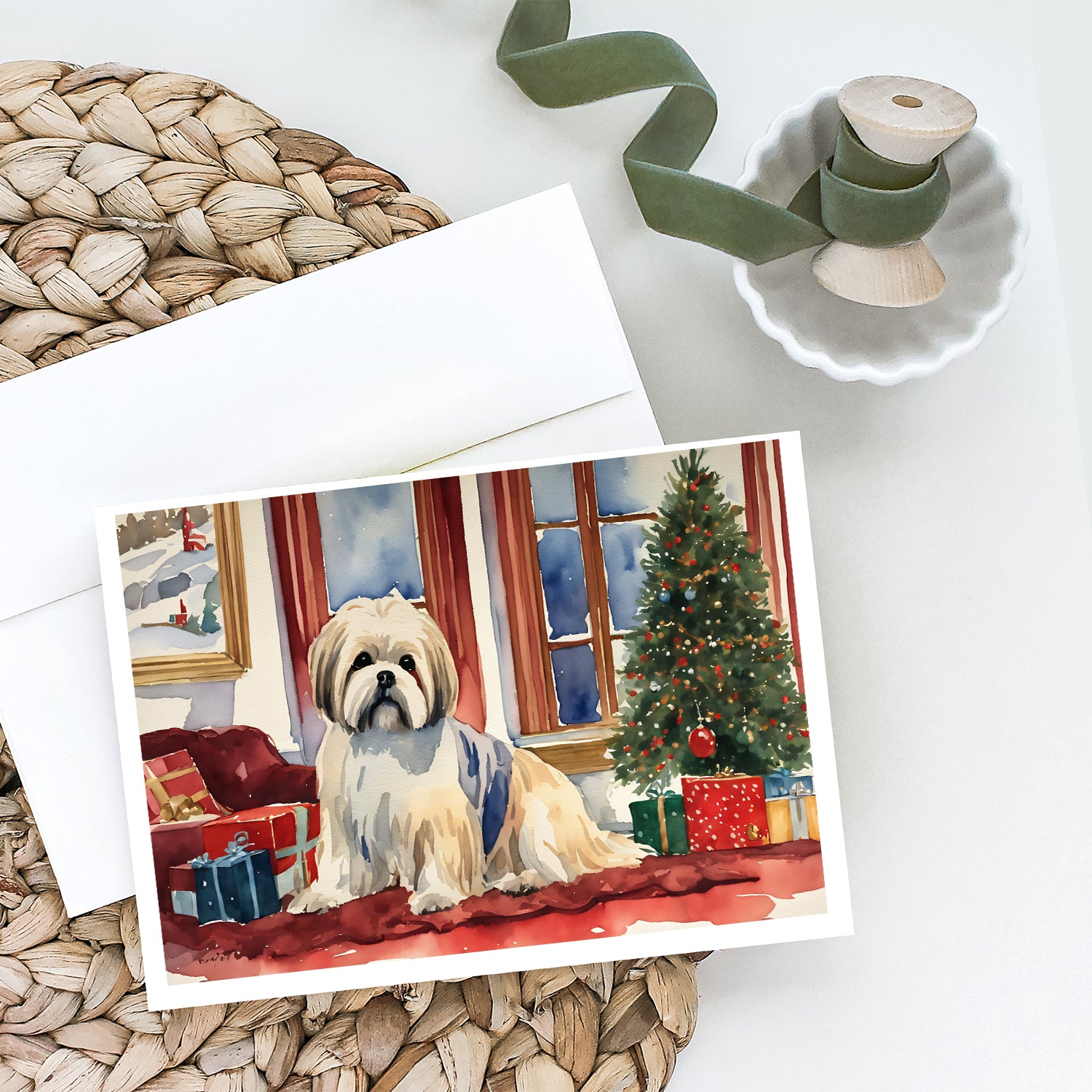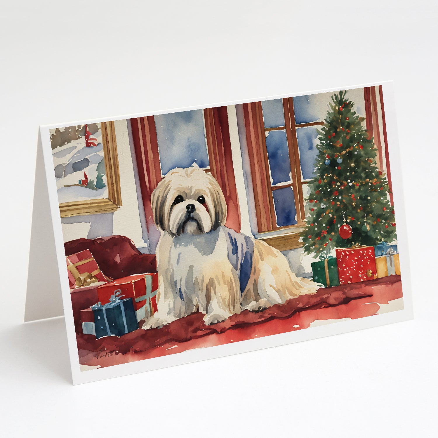 Lhasa Apso Cozy Christmas Greeting Cards Pack of 8