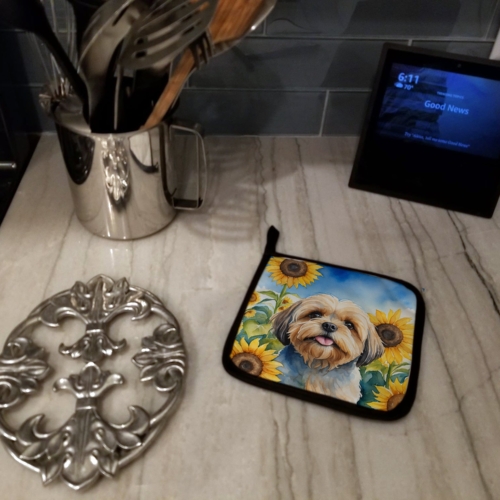 Lhasa Apso in Sunflowers Pair of Pot Holders