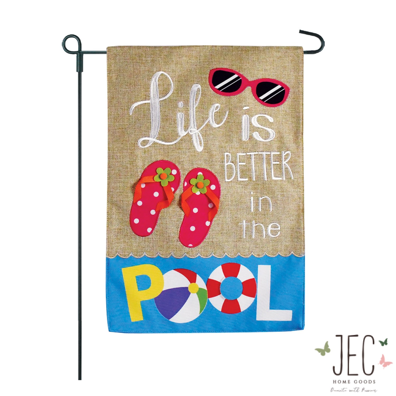 Life is Better in The Pool Burlap 2-Sided Garden Flag 12.5×18″
