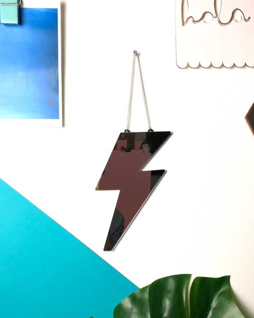 LIGHT ME lightning bolt mirror, our latest addition to our wall decor are so fun and lightweight as they are made from Acrylic perspex. Perfect for adding a fun touch to any room in the modern home. Make a statement with these unique pieces designed by us at Doodlemoo. Our lightning bolt mirror hangs at 12cms and come in a beautiful eco black box.