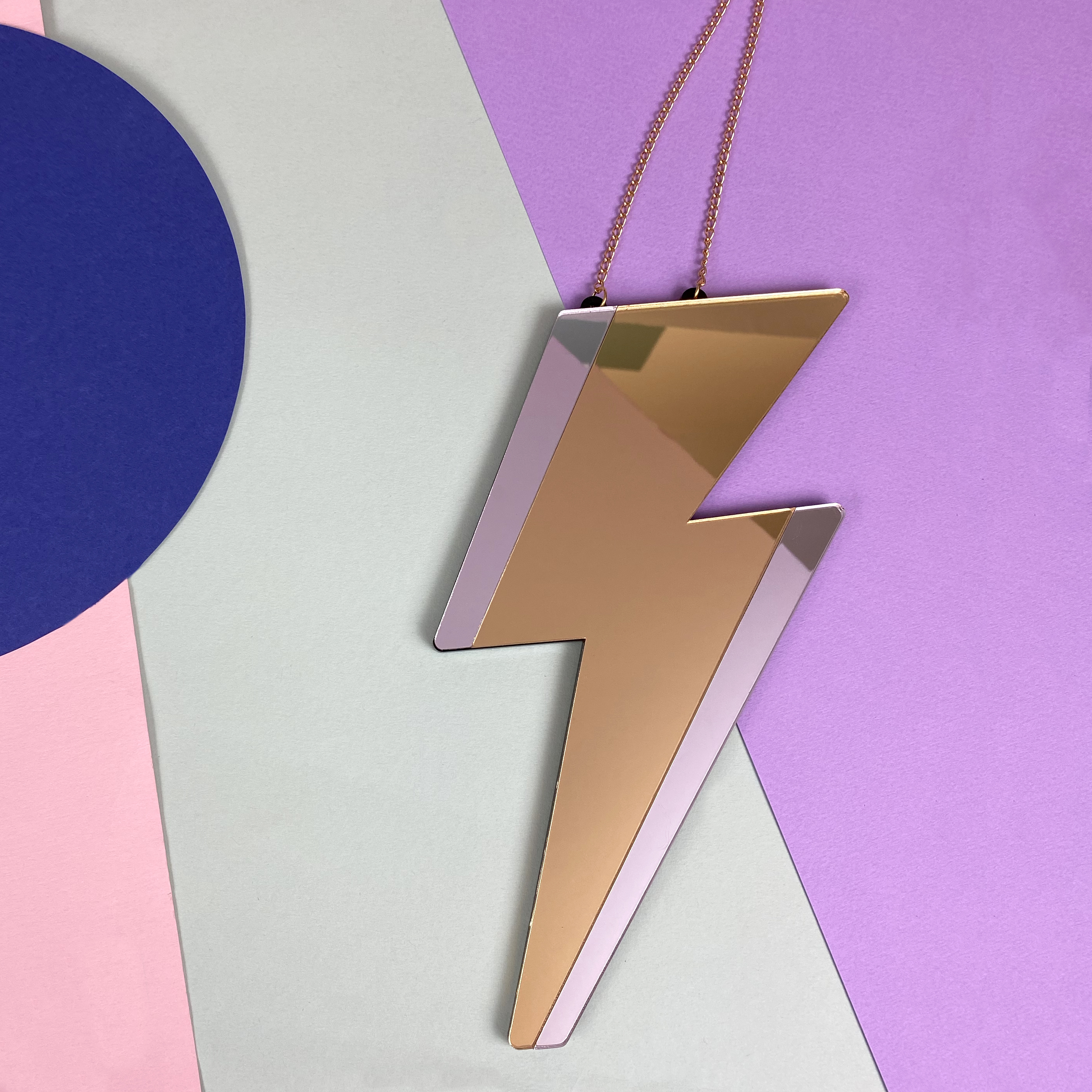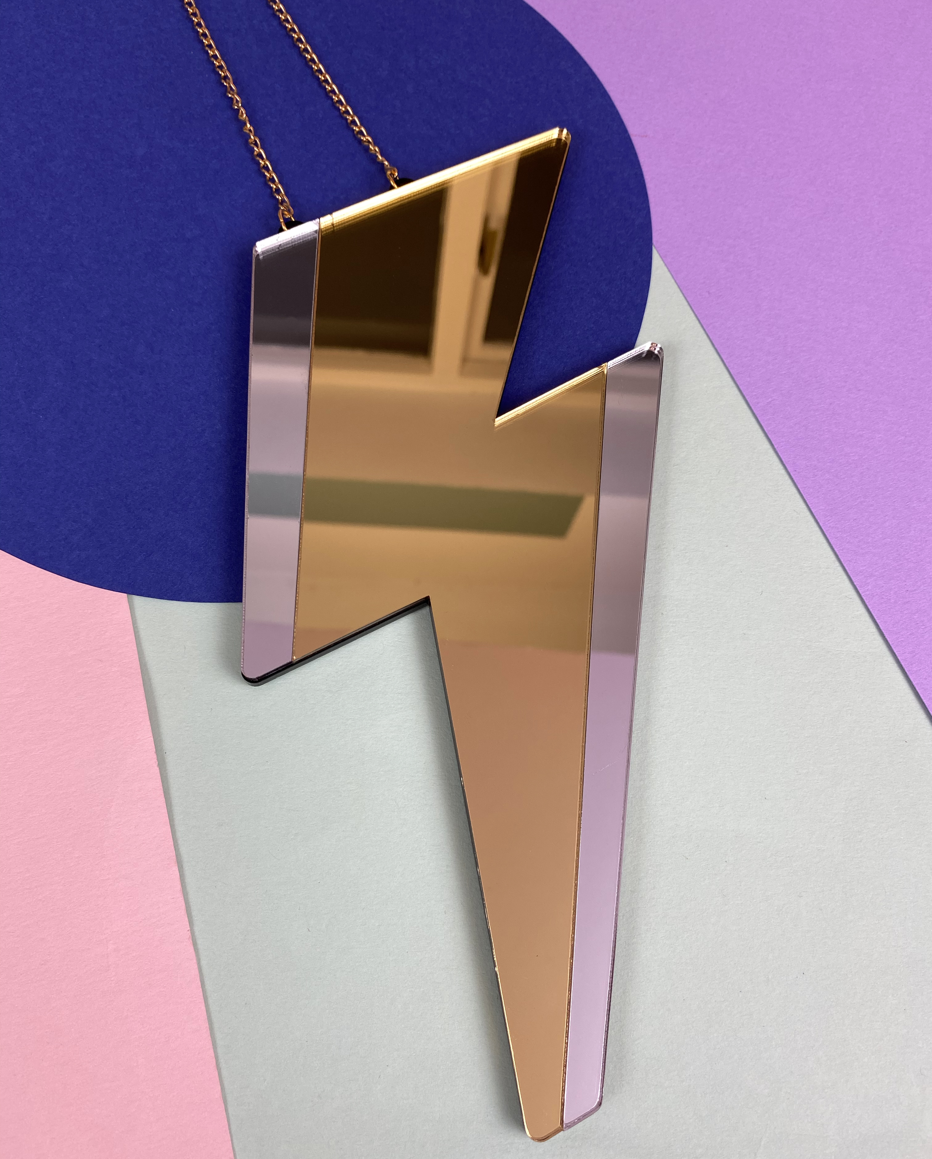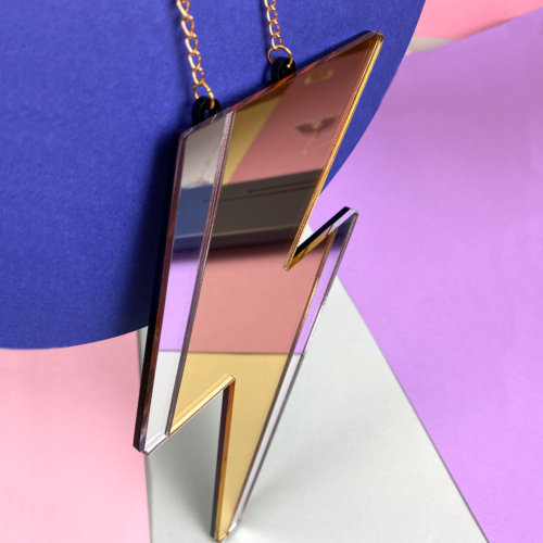 Our Lightning bolt mirror’s have had a make over and now come in Gold with silver sides giving them an extra fun dimension. Stylish, playful and lightweight as they are made from Acrylic perspex. If you are a Bowie fan why not add a Lightning bolt to your space or room. Perfect for the modern home and addition to a gallery wall. Make a statement with these unique pieces designed by us at Doodlemoo.