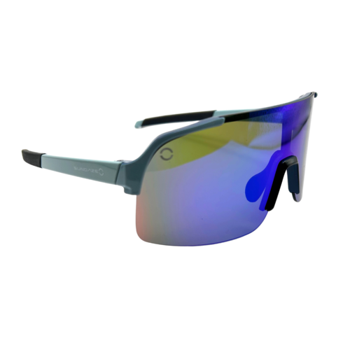 Light Pebble – Blue-Purple Mirror Shield Sunglasses Built for sun. Styled for attention. The Light Pebble sunglasses combine bold reflective mirror lenses with a light blue frame for standout looks and all-day wear. The blue-purple gradient lens minimizes glare with full polarization, keeping your eyes fresh and focused during outdoor adventures, pool parties, and sunny hangs. Features: Mirror lens with blue-purple color shift Light blue frame, fits medium/large 100% UV protection These are your go-to for bold light and bold looks. Lens: Blue and Purple Mirror Frame: Light Blue Size: Medium/Large Style: Active / Party Lens Type: Non-Polarized UV Rating: 100% UV Protection Gender: Unisex Box Items: Travel Case, Sunglass Sleeve, Microfiber Cloth