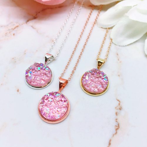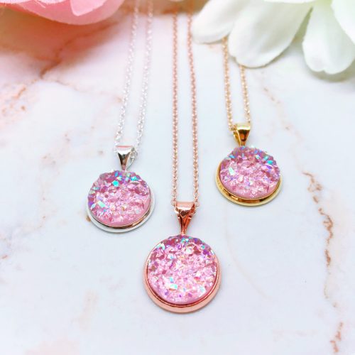 Light Pink Druzy Pendant Necklace