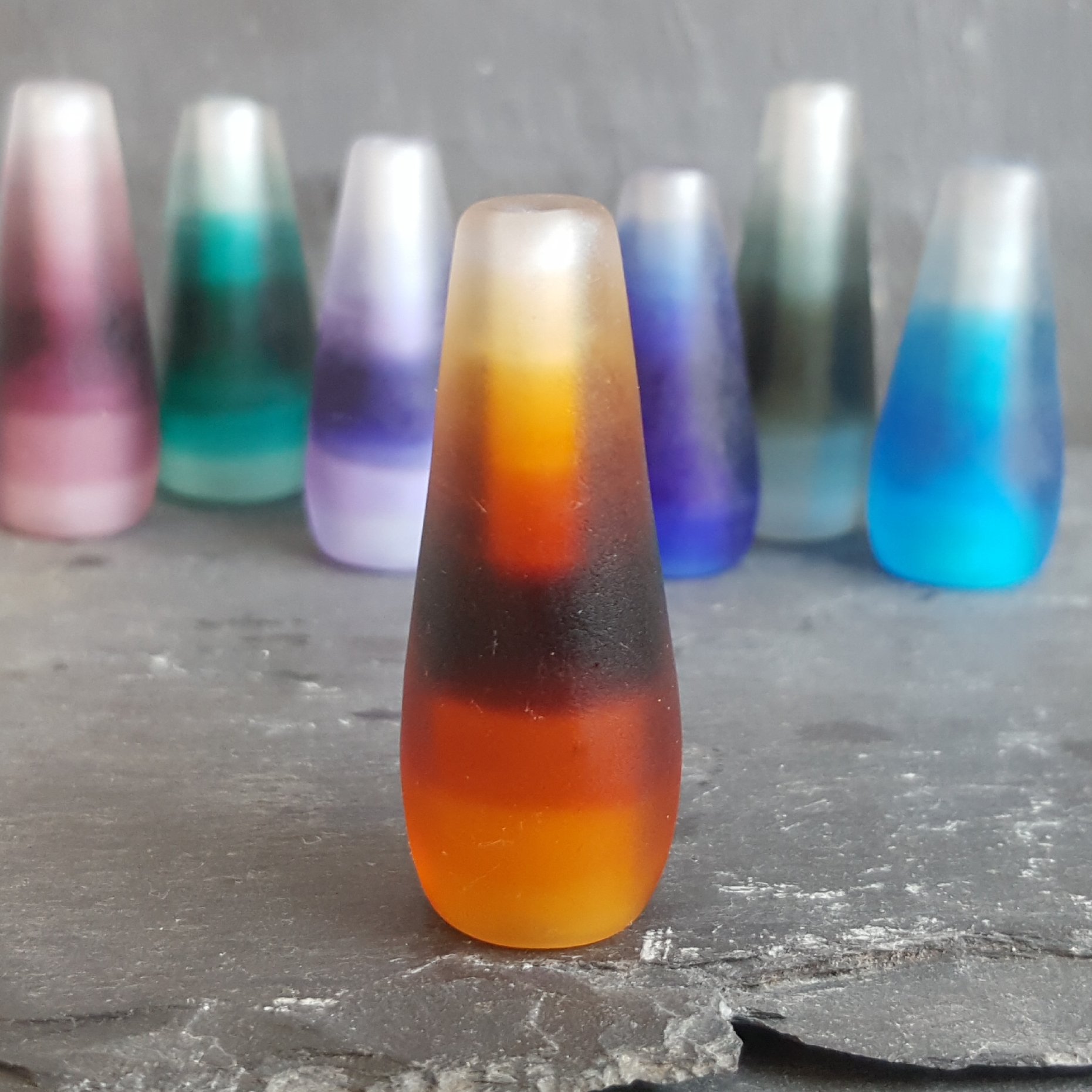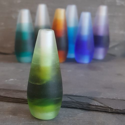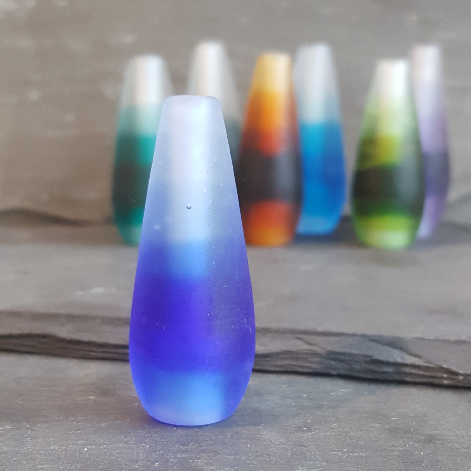 These could be light pulls, equally well they work for fans and blinds too! Each one is handmade using a range of shades to create a colour gradient. The Gradient Light Pulls are all frosted to a matte finish which allows the colours* of the glass to ‘glow’.