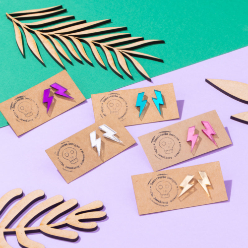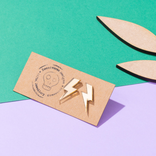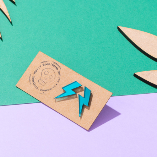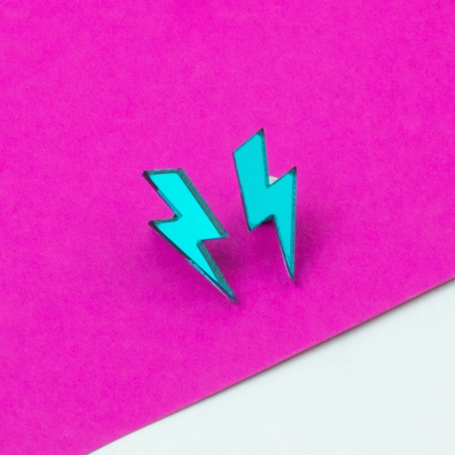 Add some electric energy to your look with these lightning bolt stud earrings! Made from laser-cut mirrored acrylic, they’re bold, lightweight, and seriously eye-catching. Available in Gold, Silver, Azure, Pink, or Purple, they catch the light beautifully for a striking finish. Perfect for everyday wear or adding a little edge to your outfit—these studs are small but make a big impact. Rock them solo or mix and match for extra spark! Each pair of stud earrings have been lovingly handmade in our studio. Made from Acrylic to make them lightweight. Surgical steel earring post which makes them Hypo allergenic and Nickel free. Earrings will be packaged in a gift box, perfect as a gift for yourself or a loved one. Dimensions:Each Stud Measures Approx: 25 x 10mm 3mm Mirrored AcrylicSurgical steel bullet back and rubber stopper Care Information: Wipe with luke warm, soapy water and soft cloth.Keep water, perfume and any other lotions or potions away from your jewellery as this can discolour any metal parts.Store and transport your jewellery in the box to keep it safe.