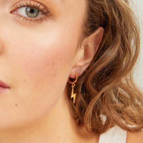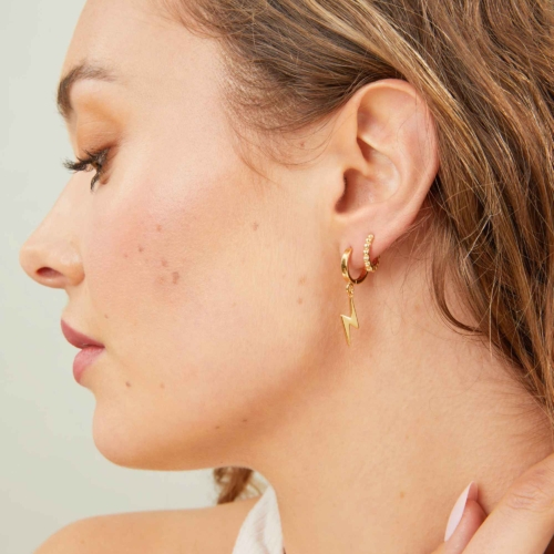 Clicker huggie hoops featuring subtle lightening bolt charms that look just as impactful alone as they do mixed with other hoops. An every day ‘go to’ that upgrades your look, with a hint of ‘edge’