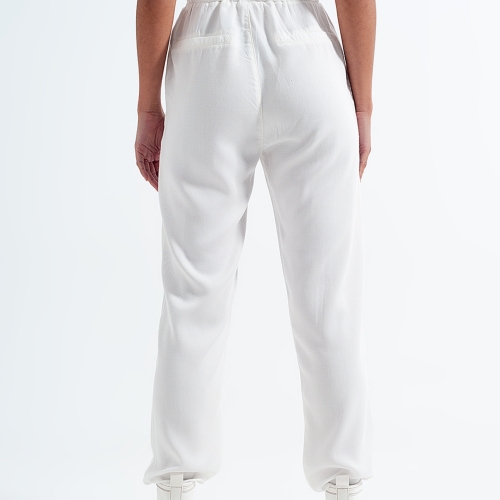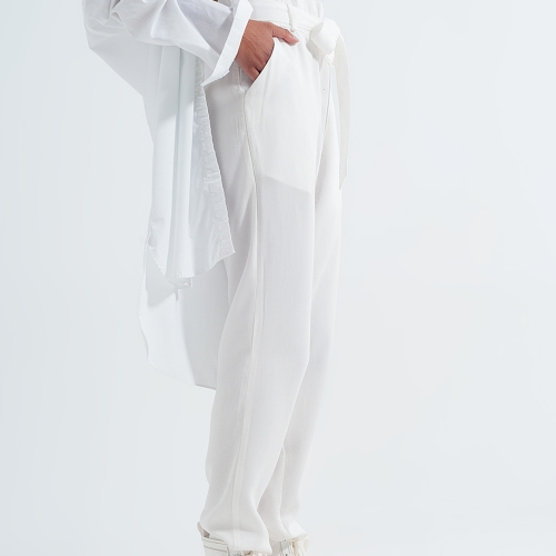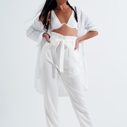 Pants high rise waist tie and functional pockets with stretchy woven cotton and lightweight feel