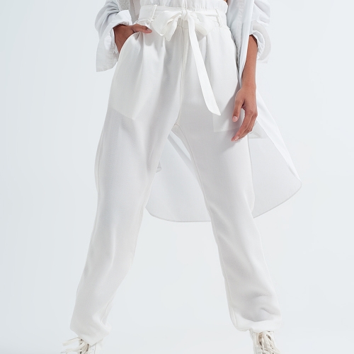 Pants high rise waist tie and functional pockets with stretchy woven cotton and lightweight feel