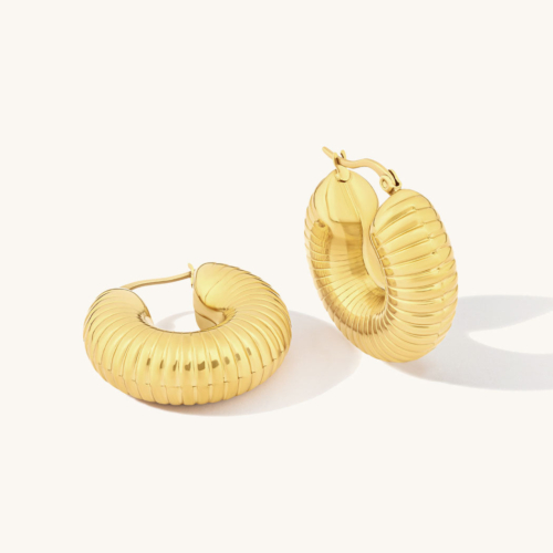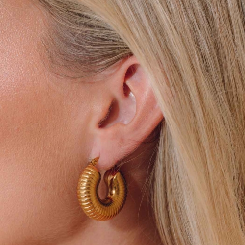 The Lila hoops bring a bold twist to a classic shape. With their sculptural textured design, they’re designed to stand out without trying too hard. Effortless to style and easy to wear, these are the hoops you’ll reach for on repeat. Plated using a new vacuum technique, making it tarnish-proof, life-proof and durable. MATERIALS : 18K gold plated recycled brass SIZING : 12mm post, 6cm hoops