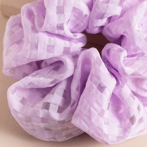 A pastel purple oversized scrunchieMade using an organza check printPerfect for spring-summer collectionsDimensions: elasticated inner circumference – 9cm outer circumference – 44cmMade from: fabric, elastic