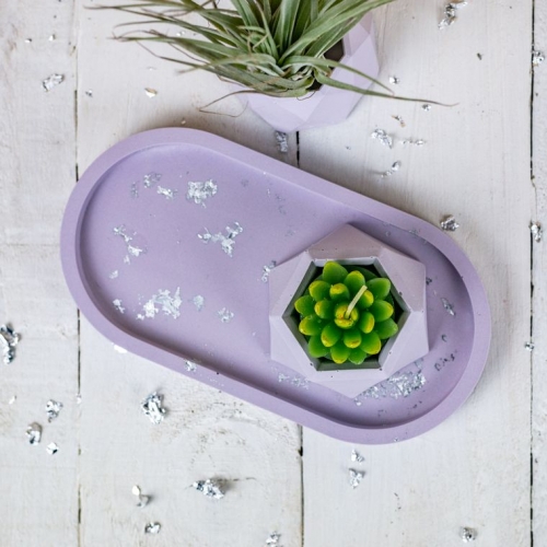 Give your fireplace, shelves, table, window sill (you get the idea!) a quirky, colourful upgrade with this extremely tactile, geometric jesmonite mini planter and trinket tray set. The tray has an eye-catching silver leaf feature. Use it for tea lights or mini cacti or succulents. Although, I recommend tea lights in the shape of cacti and succulents! Yes, I’ve gone down the tea light rabbit hole.