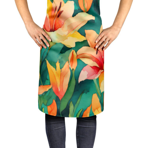 Apron featuring breed specific Lilies artwork. Elevate your cooking, baking, and grilling experiences with our versatile Kitchen or BBQ Apron. This Bib Style apron isn’t just limited to culinary activities – it also serves as an excellent baking apron, artist apron, server apron, gardening apron, or even a dog grooming apron. The apron showcases vibrant full-color artwork contributed by one of our talented artists, bringing a dash of style to your daily tasks. With dimensions of approximately 27″W x 30″H, it provides ample coverage to protect your clothing from spills and splashes. Our apron is meticulously crafted from 100% Ultra Spun Polyester, known for its durability and lightweight nature. The apron comes with white tie straps, ensuring a comfortable and adjustable fit for all. It’s a perfect choice for kitchen apron enthusiasts, whether you are a woman or a man. Designed for easy maintenance, this apron is fully machine washable. The quick-drying polyester material actively reduces staining, keeping your apron looking fresh and new for longer. Our beautifully designed apron isn’t just a functional kitchen accessory – it’s a fashion statement in the culinary world!
