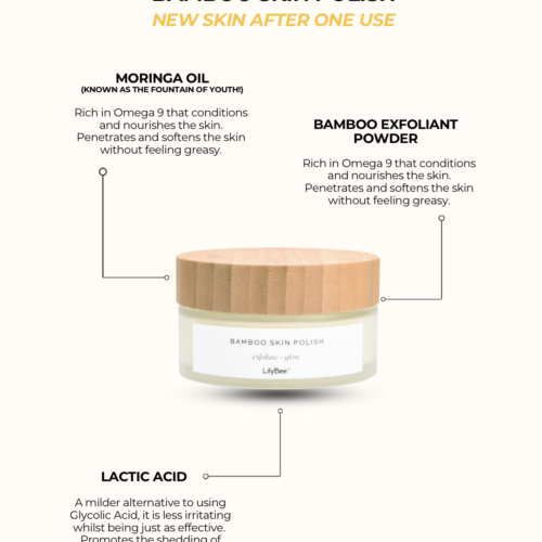 Reveal radiant, smooth skin with our gentle Bamboo Skin Polish. Powered by finely ground bamboo powder, this exfoliant effortlessly removes impurities and dead skin cells while nourishing and hydrating your complexion. Perfect for daily use on face and body.