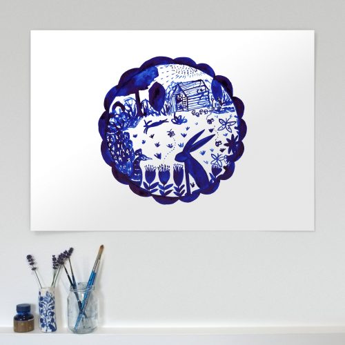 In England, the hare is thought to be a very special creature. The hare brings luck, and in ancient times was considered to be magical. The romance of hares in nature inspire this collection of prints.