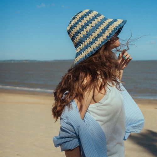 The “Linea” straw hat is all about texture and ease-made to pack, toss on, and go. With its effortless shape and wavy woven pattern, it adds a touch of laid-back cool to any outfit. Product Description: Material: 100% Eco-cellulose Fiber Circumference: 22″-22.8″ (56-58 cm) Height: 4.7″ (12 cm) Brim Width: 4.1″ (10.5 cm) *Due to the handmade nature of the hat, the measurements may vary slightly.