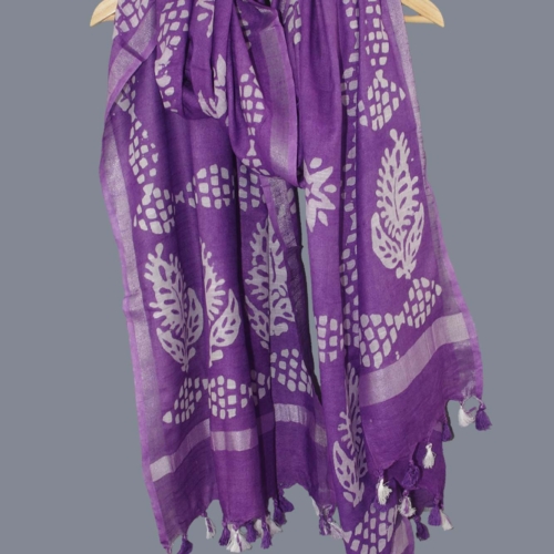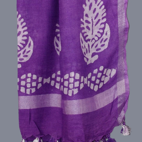 Linen Scarf / Stole with Tussle – Purple Batik Print