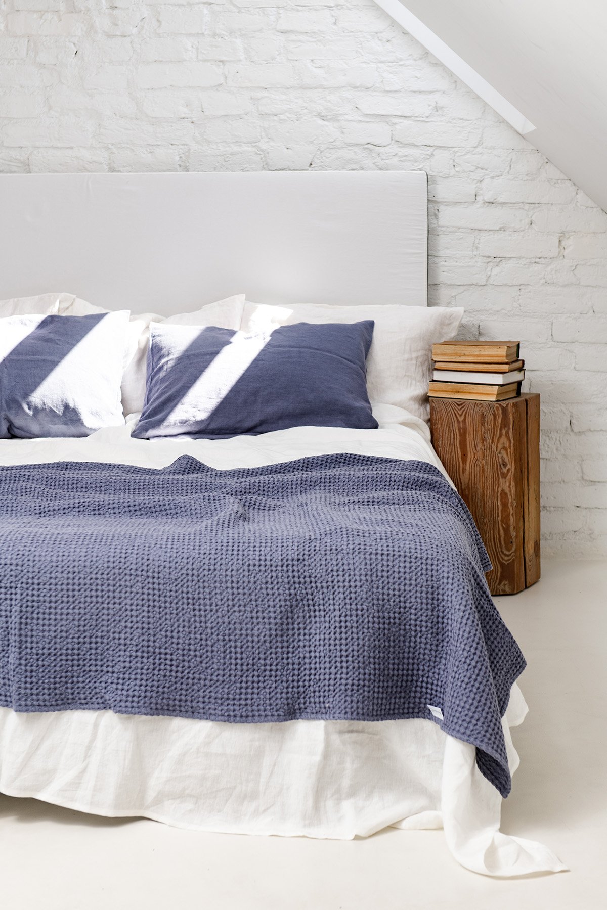 Textured, cotton-linen blend waffle throws have become a really popular choice, thanks to their high quality, casual look, long lastingness, comfort, and mostly because of the versatile usage ways. They are made super soft textured with a waffle, honeycomb weave, the textile is stonewashed which add a special softness and smoothness to the material.