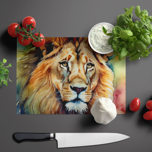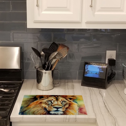 Glass Cutting Board featuring breed specific Lion artwork. Introduce your kitchen to the vibrant, large Decorative Glass Cutting Board from Caroline’s Treasures. Crafted from resilient tempered glass, this board is not only a utilitarian necessity but also a colorful art piece. With its generous dimensions of 15 inches in height and 12 inches in length, it offers ample space for all your cutting needs. Every piece showcases captivating artwork from distinguished artists, bringing an aesthetic edge to your kitchen. Beyond its attractive design, this cutting board ensures your countertop stays pristine and unscathed, owing to its heat-resistant properties. Engineered with user convenience in mind, it features non-skid feet for stability, and rounded corners for additional safety. Its robust construction renders it virtually unbreakable, guaranteeing longevity. The board comes with protective feet bumpers, maintaining its position during use. This product is recommended to be hand washed only. Proudly printed and assembled in the United States, this cutting board exemplifies superior craftsmanship. With Caroline’s Treasures’ Decorative Glass Cutting Board, you’re investing in a blend of functionality and artistic flair.