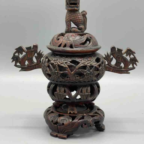 Soapstone is a soft rock that is capable of being carved and etched to great deal without fracturing. This is a symbol of both the aesthetics and talent of Vietnamese workers. Mined from the mountains of Quang Ninh, this soapstone was designed, carved and painted to produce a complete masterpiece. It takes hours to finish and ultimately become a one of a kind piece. This carving measures 6 1/4″ tall (16 cm)
