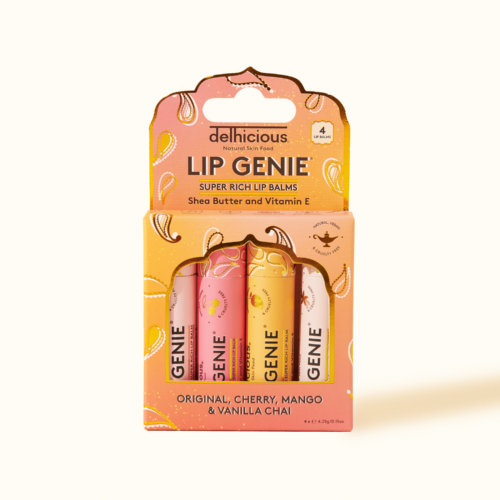 Meet the Lip Genie 4 Pack, four nourishing lip balms, each with a scent to match your mood. Powered with Indian tea and ultra-hydrating oils, these balms glide on like a dream and leave lips soft, smooth and never sticky.