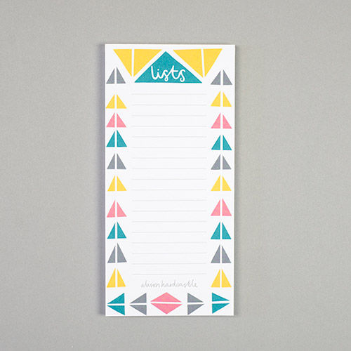 Stylish and useful jotters for scribbling quick lists and notes on the go. Each page is lined and printed with a graphic pattern to make list writing that bit less dull!