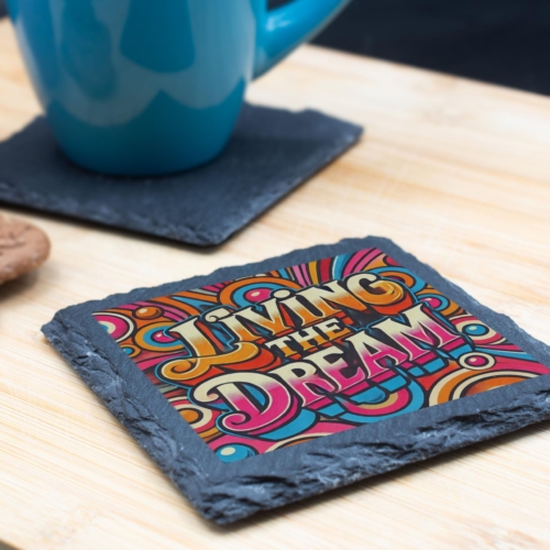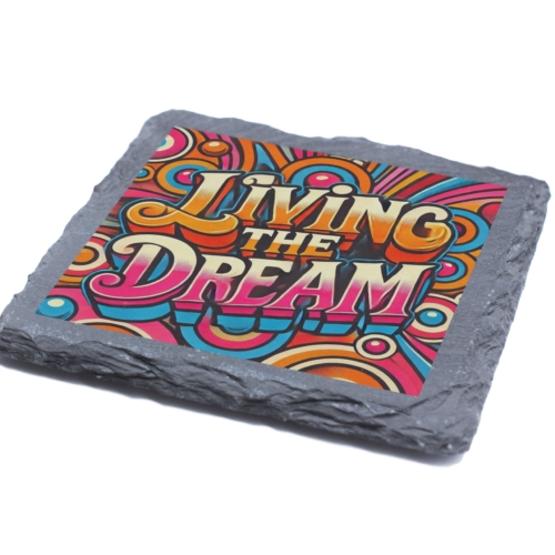 Living the Dream Slate Coaster ? Vibrant and Inspirational Design (slco-ds24-dreamliverg)
