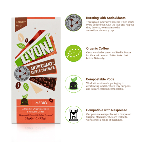 CERTIFIED ORGANIC: We think nature really does know best, so we only use coffee beans from organically certified farms. That means LivOn! Organic Coffee Capsules contain no nasty solvents, pesticides, or other chemicals.
