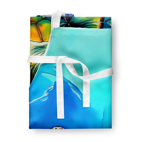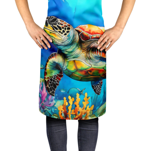 Apron featuring breed specific Loggerhead Sea Turtle artwork. Elevate your cooking, baking, and grilling experiences with our versatile Kitchen or BBQ Apron. This Bib Style apron isn’t just limited to culinary activities – it also serves as an excellent baking apron, artist apron, server apron, gardening apron, or even a dog grooming apron. The apron showcases vibrant full-color artwork contributed by one of our talented artists, bringing a dash of style to your daily tasks. With dimensions of approximately 27″W x 30″H, it provides ample coverage to protect your clothing from spills and splashes. Our apron is meticulously crafted from 100% Ultra Spun Polyester, known for its durability and lightweight nature. The apron comes with white tie straps, ensuring a comfortable and adjustable fit for all. It’s a perfect choice for kitchen apron enthusiasts, whether you are a woman or a man. Designed for easy maintenance, this apron is fully machine washable. The quick-drying polyester material actively reduces staining, keeping your apron looking fresh and new for longer. Our beautifully designed apron isn’t just a functional kitchen accessory – it’s a fashion statement in the culinary world!