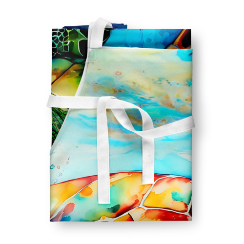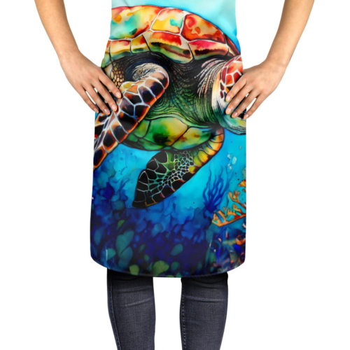 Apron featuring breed specific Loggerhead Sea Turtle artwork. Elevate your cooking, baking, and grilling experiences with our versatile Kitchen or BBQ Apron. This Bib Style apron isn’t just limited to culinary activities – it also serves as an excellent baking apron, artist apron, server apron, gardening apron, or even a dog grooming apron. The apron showcases vibrant full-color artwork contributed by one of our talented artists, bringing a dash of style to your daily tasks. With dimensions of approximately 27″W x 30″H, it provides ample coverage to protect your clothing from spills and splashes. Our apron is meticulously crafted from 100% Ultra Spun Polyester, known for its durability and lightweight nature. The apron comes with white tie straps, ensuring a comfortable and adjustable fit for all. It’s a perfect choice for kitchen apron enthusiasts, whether you are a woman or a man. Designed for easy maintenance, this apron is fully machine washable. The quick-drying polyester material actively reduces staining, keeping your apron looking fresh and new for longer. Our beautifully designed apron isn’t just a functional kitchen accessory – it’s a fashion statement in the culinary world!