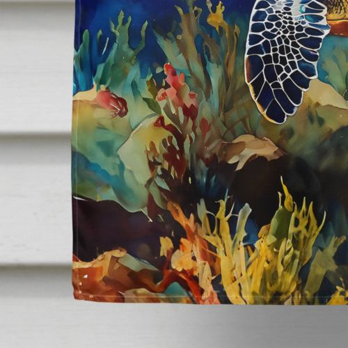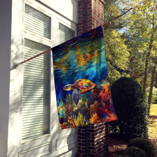 House Flag featuring breed specific Loggerhead Sea Turtle artwork. Presenting our Heavy Duty Polyester House Size Decorative Sleeve Pole Flag, a vibrant addition to enhance the aesthetic appeal of your home. This large decorative flag, measuring approximately 28 x 40 inches, offers ample coverage and visibility. Each flag is meticulously sewn and made individually, ensuring a unique piece that may slightly vary in size. It’s a sleeve pole flag, designed to fit a standard decorative flag pole effortlessly. Please note that the flag pole and bracket are not included and should be purchased separately. What sets our flag apart is its dual-sided print. The design is mirrored on both sides of the fabric, allowing for uniform visibility regardless of the angle. Printed in full color, our flag showcases vibrant hues that truly stand out. To ensure lasting vibrancy and durability, the dyes are heat-set into the fabric. This ensures your flag remains bright and captivating through various weather conditions. Elevate the look of your home with our Heavy Duty Polyester House Size Decorative Sleeve Pole Flag!