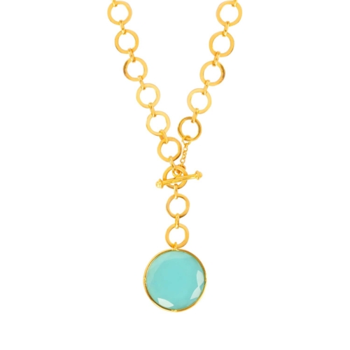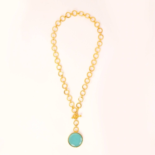 Elevate your jewelry collection with this elegant London Blue Crystal Pendant, designed to add a sophisticated pop of color to any look. The pendant features a deep, captivating London blue crystal, suspended from a sleek metal loop chain that enhances its modern and refined appeal.Finished with a secure T-lock closure, this necklace is as functional as it is stylish, ensuring a comfortable fit and easy wear. The rich blue hue of the crystal makes this pendant perfect for both day-to-day elegance and special evening occasions.22ct gold plated BrassLength: 22 inchesPendant measures 1 inchesAdjustable to any link