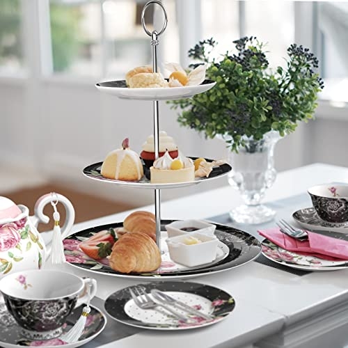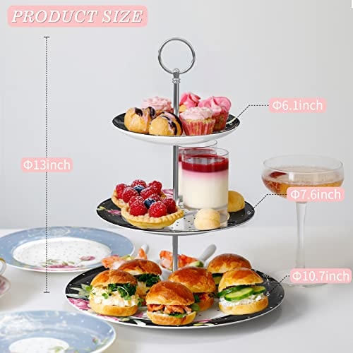 Brand: London BoutiqueColor: BlackFeatures: Premier Qulity — Made with premier quality of porcelain, no animal bone ash, suitable for vegan and vegetarian. Glazed white Chinaware, with vintage shabby chic flora rose design Size — Large 10.7 inches, Medium 7.6inches, Small 6.1 inches; Height of the cake stand is 13 inches. 3 of the plates have a hole in the middle for the fittings; Silver matel fittings with instruction of assembly; 4 Colours: Black, Turquoise, Blue and Pink; Vintage British Shabby Chic design in glazed white china Food Safe — No lead, meet food safety standard. Made with premium qulity of porcelain, no bone ash. Bright white colour give it elegant touch. Perfect Gift — Taylor made gift box matching the design of the cake stand, perfect gift idea for the loved ones, or treat yourself Microwave and Dishwasher safe EAN: 5060777559885
