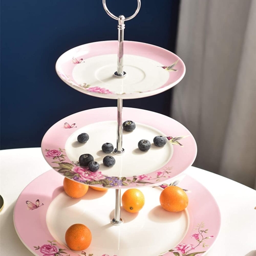 Brand: London BoutiqueColor: PinkFeatures: Porcelain Tiered cake stands, cake stands fittings come with the set Bottom Plate: 26cm wide, Top Plate: 19cm wide, cake stands Height: 22cm High Quality Porcelain China, Blue, Beige, Pink and Turquoise 4 colours Same flower design of gift box, Silver Colour metal stand, not plastic 2 years Guarantee, hassle free replacement and returns,we will replace any damages during post. Free gift wrap, occasion card and messages Binding: Kitchen & HomeRelease Date: 27-03-2018Details: this classic cake stand perfect for use all year round as a delightful table centrepiece for serving afternoon tea, capable of holding a veritable feast of sandwiches, cakes, scones, canapes and other delicious goodies. perfect gift ideas, it comes 4 colours — Blue, Beige, Pink and TurquoisePackage Dimensions: 12.8 x 12.8 x 2.0 inches