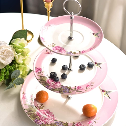 Brand: London BoutiqueColor: PinkFeatures: Porcelain Tiered cake stands, cake stands fittings come with the set Bottom Plate: 26cm wide, Top Plate: 19cm wide, cake stands Height: 22cm High Quality Porcelain China, Blue, Beige, Pink and Turquoise 4 colours Same flower design of gift box, Silver Colour metal stand, not plastic 2 years Guarantee, hassle free replacement and returns,we will replace any damages during post. Free gift wrap, occasion card and messages Binding: Kitchen & HomeRelease Date: 27-03-2018Details: this classic cake stand perfect for use all year round as a delightful table centrepiece for serving afternoon tea, capable of holding a veritable feast of sandwiches, cakes, scones, canapes and other delicious goodies. perfect gift ideas, it comes 4 colours — Blue, Beige, Pink and TurquoisePackage Dimensions: 12.8 x 12.8 x 2.0 inches